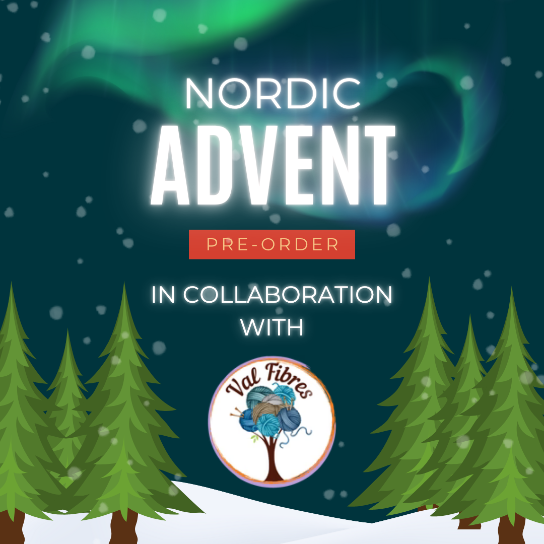 Unit price / perJoin us and Val Fibres in a 12 day advent calendar filled with yarn and notions. This advent is themed around a Nordic snow scaped mountain side.