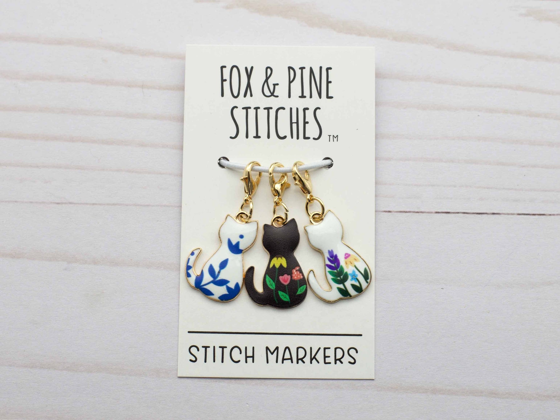 These cute stitch markers are made for all of the cat lovers out there. This listing is for a set of 3 cat progress keepers. It includes one cat in each of the 3 colors shown.