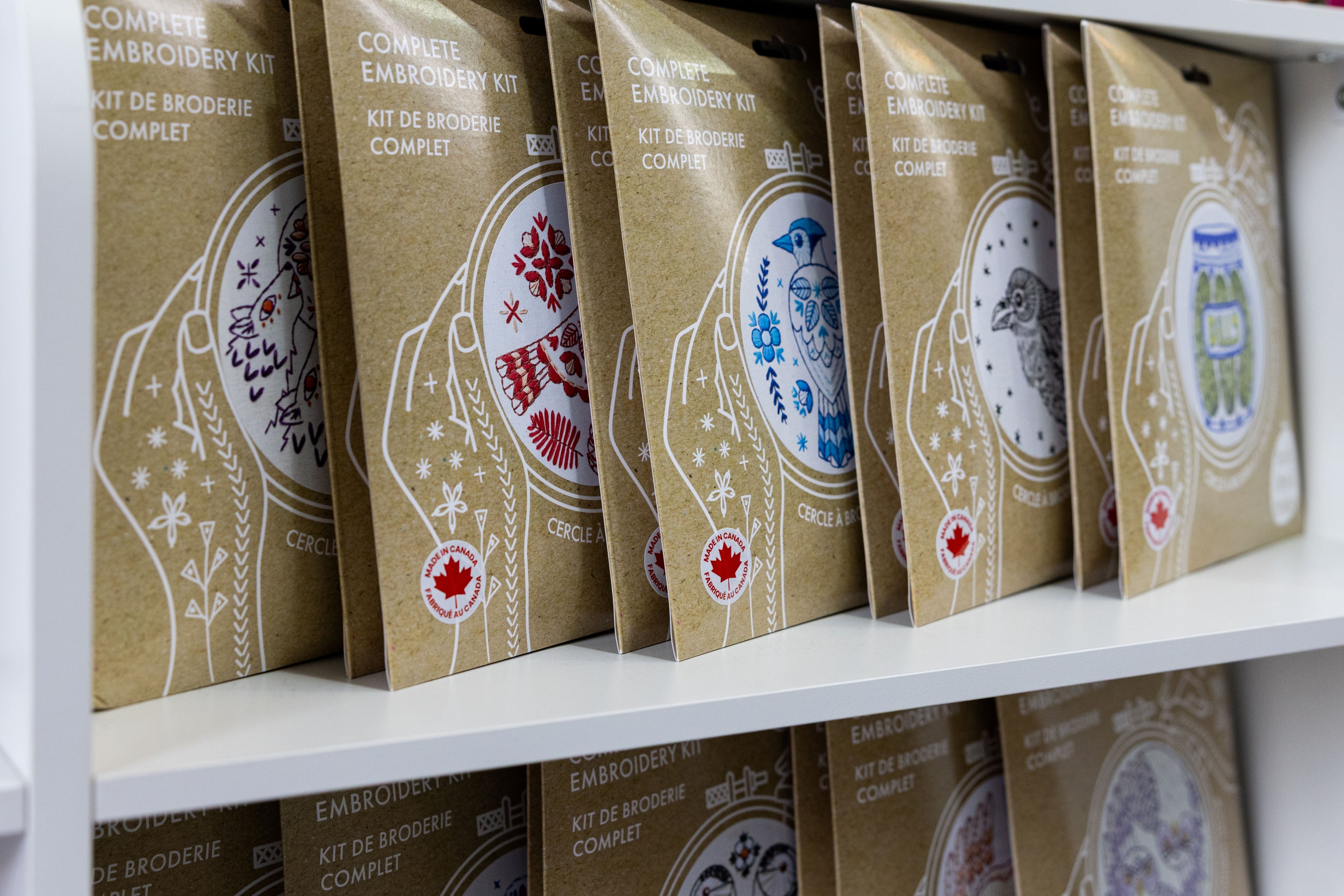 Currently, 100% of our embroidery kits are from Canadian artists. The artist brands include Knitted Bliss Stitching from Ontario, Hook, Line & Tinker from Nova Scotia, and Angiels Art from Alberta.