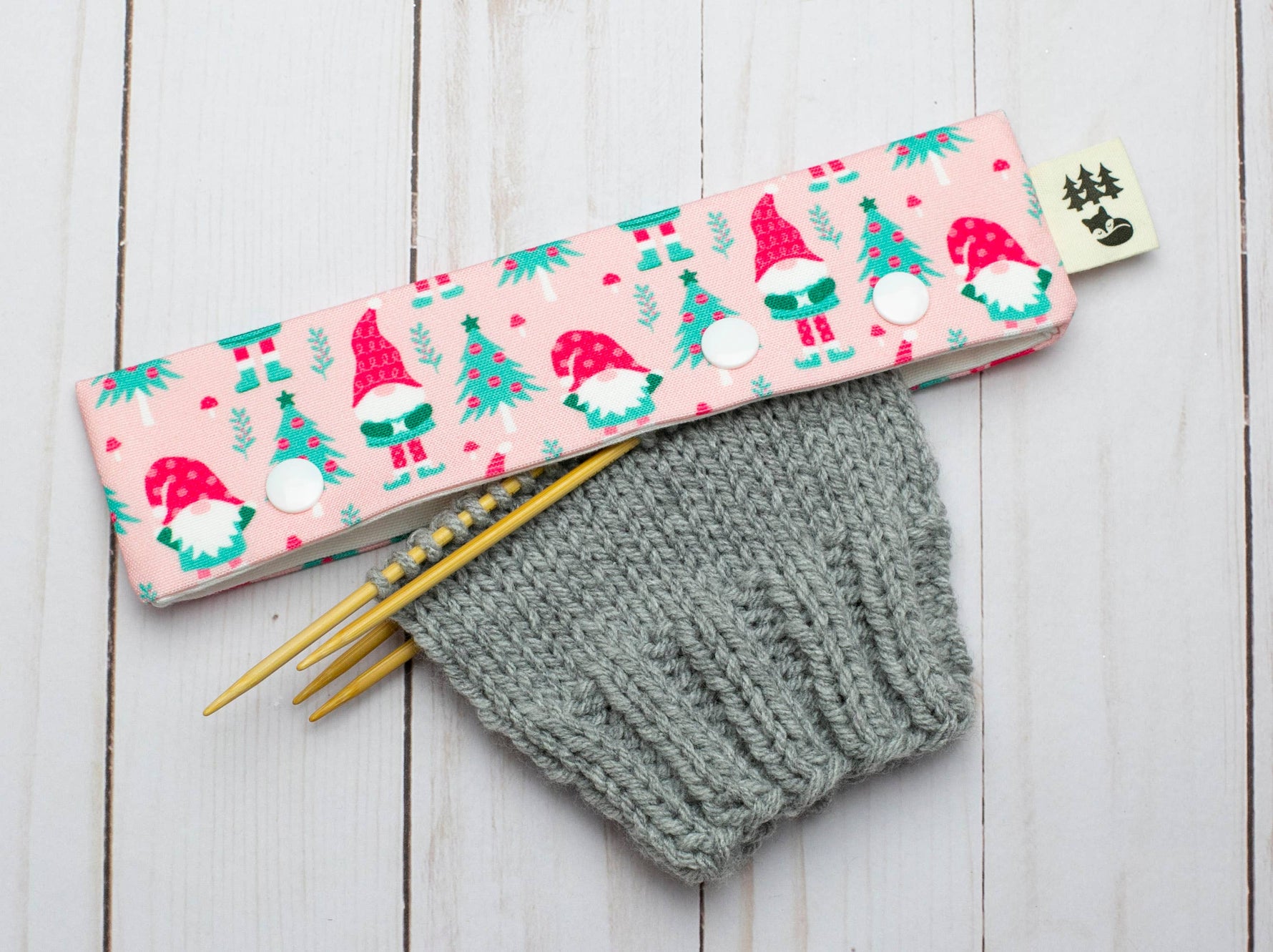 Unit price / perFestive Gnome DPN Holder sleeve ideal for sock knitting by keeping your stitches from slipping off your needles. They fit both 6" and 8" long double pointed needles.